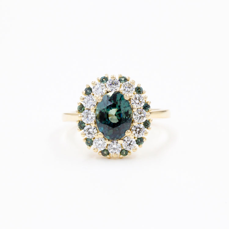 Bague entourage diamants sertie en son centre d’un saphir - 110011